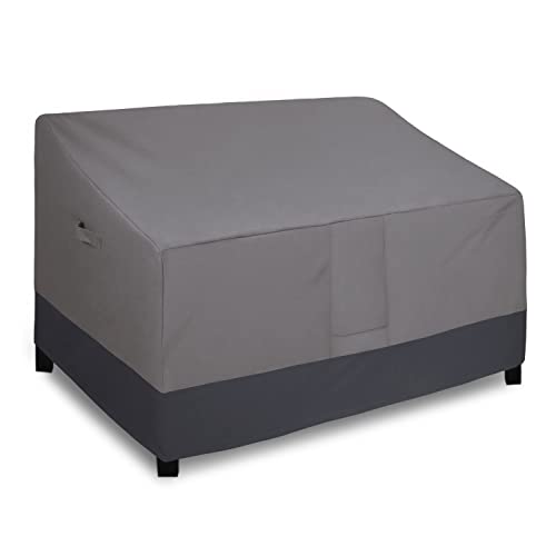 The Easy-Going Waterproof Outdoor Loveseat Cover is a must-have for protecting your patio furniture. Measuring 54"Wx38"Dx35"H, it's essential to select a cover slightly larger than your loveseat for a perfect fit. Crafted from 600D heavy-duty oxford fabric with PVC backing, it offers unparalleled durability and scratch-resistance, ensuring your sofa stays dry during rainy days. This cover provides all-round protection against elements like rain, sun, snow, and dust while its secure click-close straps and elastic hem prevent it from blowing away in wind. Installation is hassle-free with padded handles, and cleaning is as simple as wiping it down with water. Choose Easy-Going for long-lasting outdoor furniture protection!