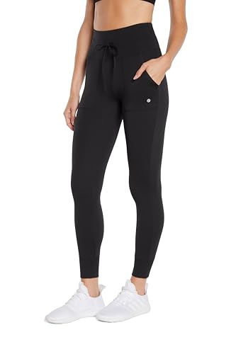 The Bally Total Fitness Women's Pocket Drawstring Jogger Leggings in black are an essential addition to your activewear collection. With a 27" inseam and a flattering 4 1/2" waistband, they offer both style and comfort. The functional drawcord ensures a secure fit, allowing for versatile wear during workouts or casual outings. The unique back seaming enhances your silhouette, making these leggings not only practical but flattering as well. Plus, the porkchop front pockets provide convenient storage for small essentials. Whether you're hitting the gym or running errands, these jogger leggings will keep you looking fashionable and feeling great.
